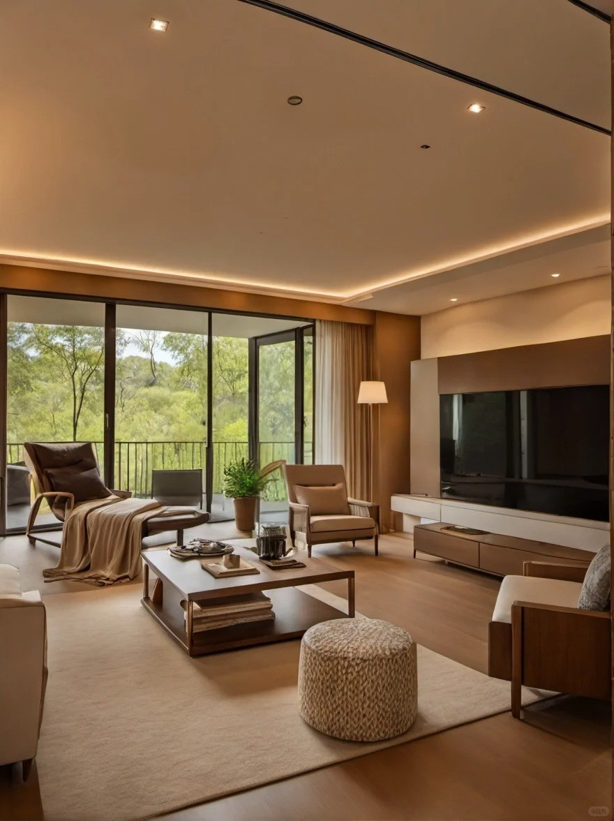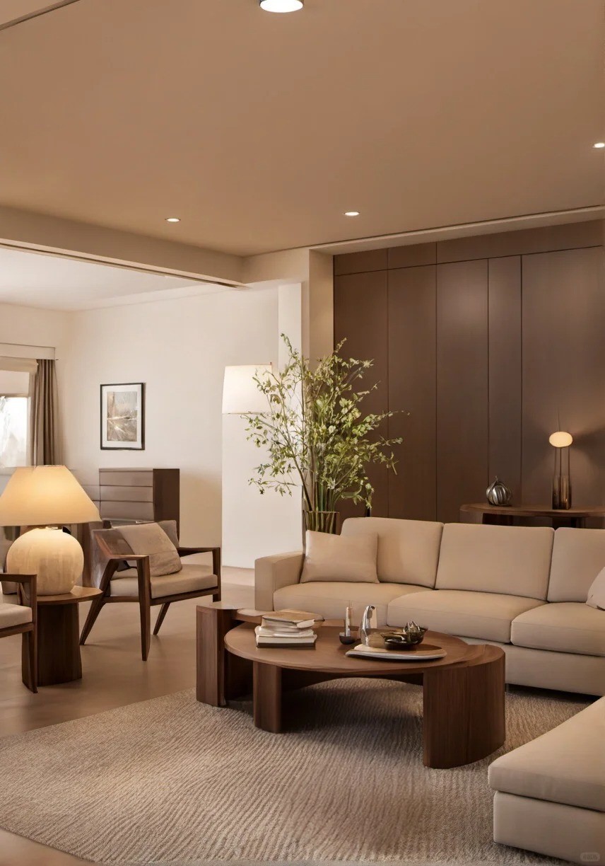 深棕色系或者黑色系的家具搭配黃銅色金屬點(diǎn)綴,覺得顏色沉重的可以選擇淺米色系,桌椅+茶幾可選木質(zhì),配合墻面更凸顯復(fù)古質(zhì)感。