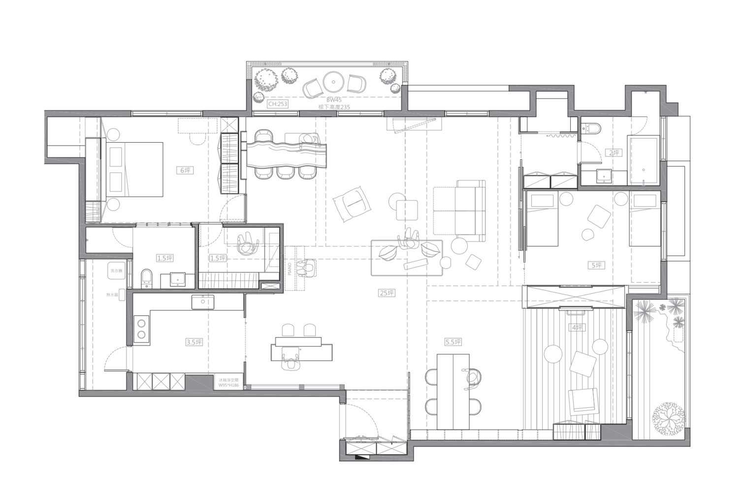 取消了原本客廳搭配電視墻的設(shè)計(jì)