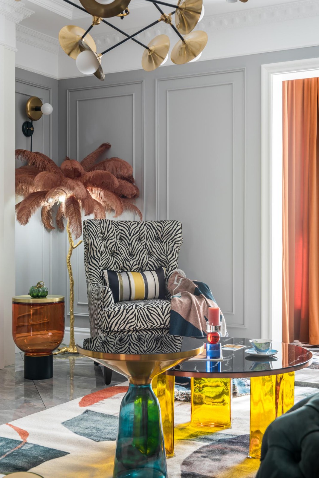 材質(zhì)各異、色彩豐富的家具和陳設(shè), 看似繁雜,實(shí)則在錯落有致中, 營造出一場五彩斑斕的視覺盛宴。