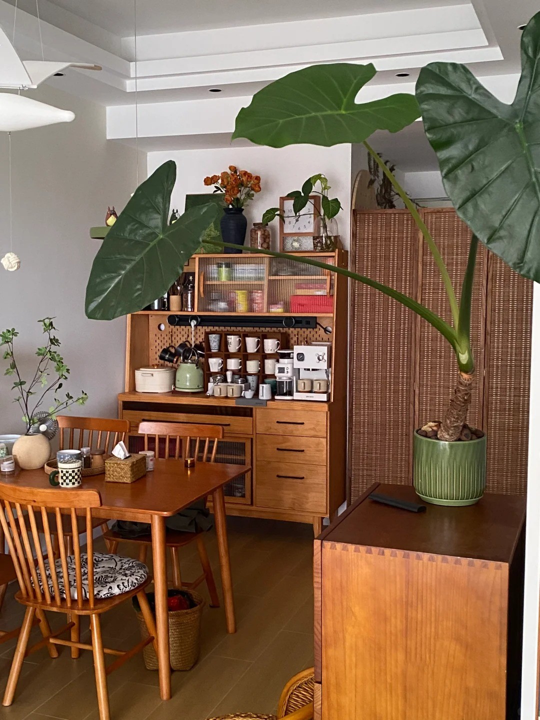小戶型原木風(fēng)淺色木紋,空間輕盈開(kāi)闊,減少壓抑感。原木風(fēng)和綠植搭配起來(lái)真的很好看,木色加治愈的綠色,打造出生機(jī)勃勃的家。燈光以暖色系為主,溫馨的原木風(fēng)一定少不了溫暖的燈光點(diǎn)綴,但不要超過(guò)3500k色溫。