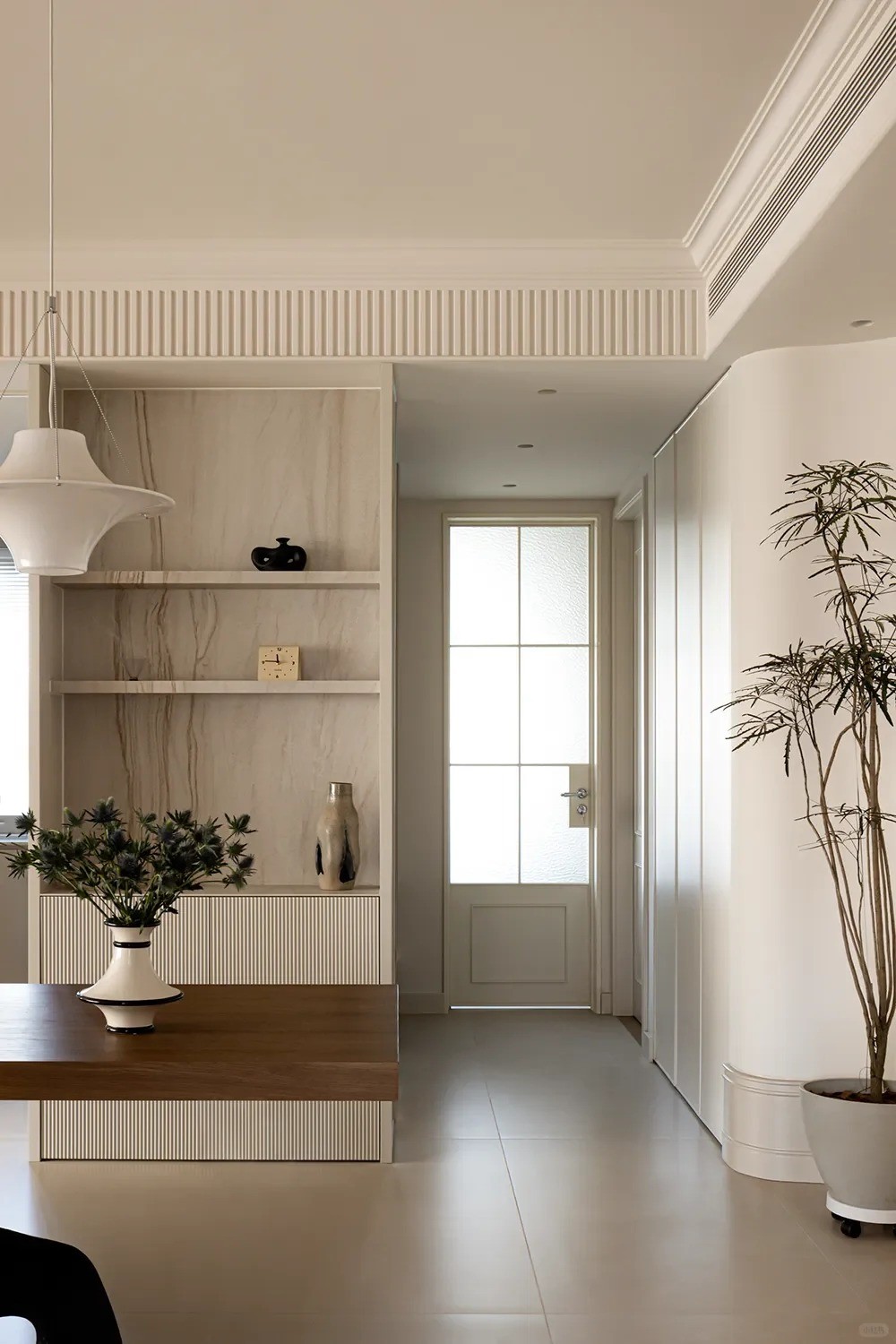 這套設(shè)計(jì)通過簡潔的線條和純白的基調(diào),結(jié)合溫潤的木質(zhì)材料和綠植的點(diǎn)綴??營造出一個(gè)舒適、溫馨、充滿藝術(shù)氣息的生活空間。每一個(gè)細(xì)節(jié)都經(jīng)過精心設(shè)計(jì),既滿足了實(shí)用功能,又體現(xiàn)了主人的品味與追求。
