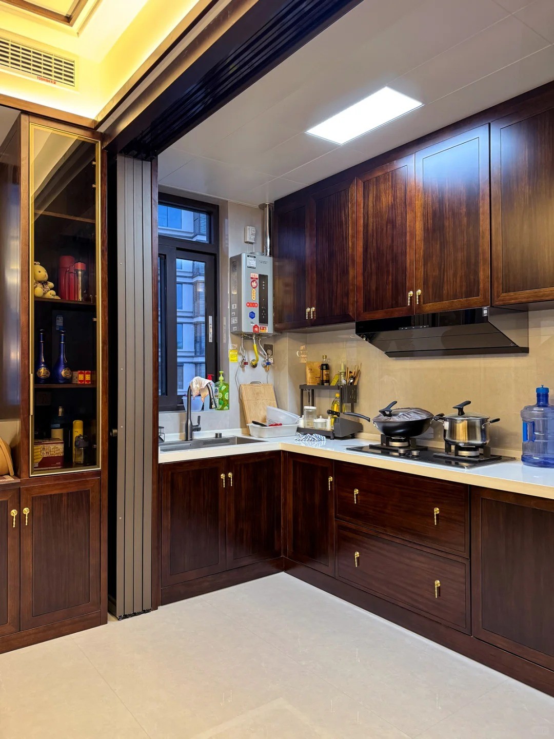 中式元素與現(xiàn)代材質(zhì)巧妙兼柔, 延續(xù)了明清時(shí)期古樸的居家理念, 莊重典雅的氛圍中流露出深厚文化底蘊(yùn)。