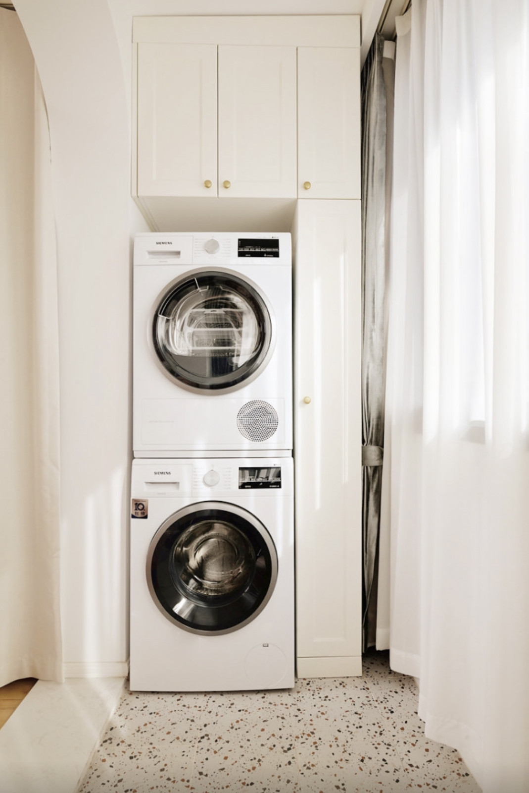 陽(yáng)臺(tái)原結(jié)構(gòu)是封閉式的,兩邊都有頂天立地的大柜子,儲(chǔ)藏是可以的,但卻讓陽(yáng)臺(tái)的本該有的吸納充足陽(yáng)光的性能失去了。
