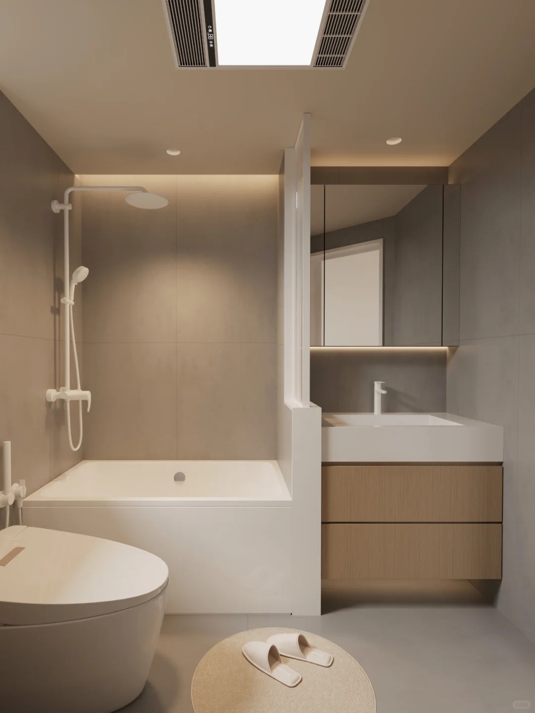 全屋簡(jiǎn)單線條與氛圍燈的點(diǎn)綴, 既不繁瑣也又增添多一許氛圍感。