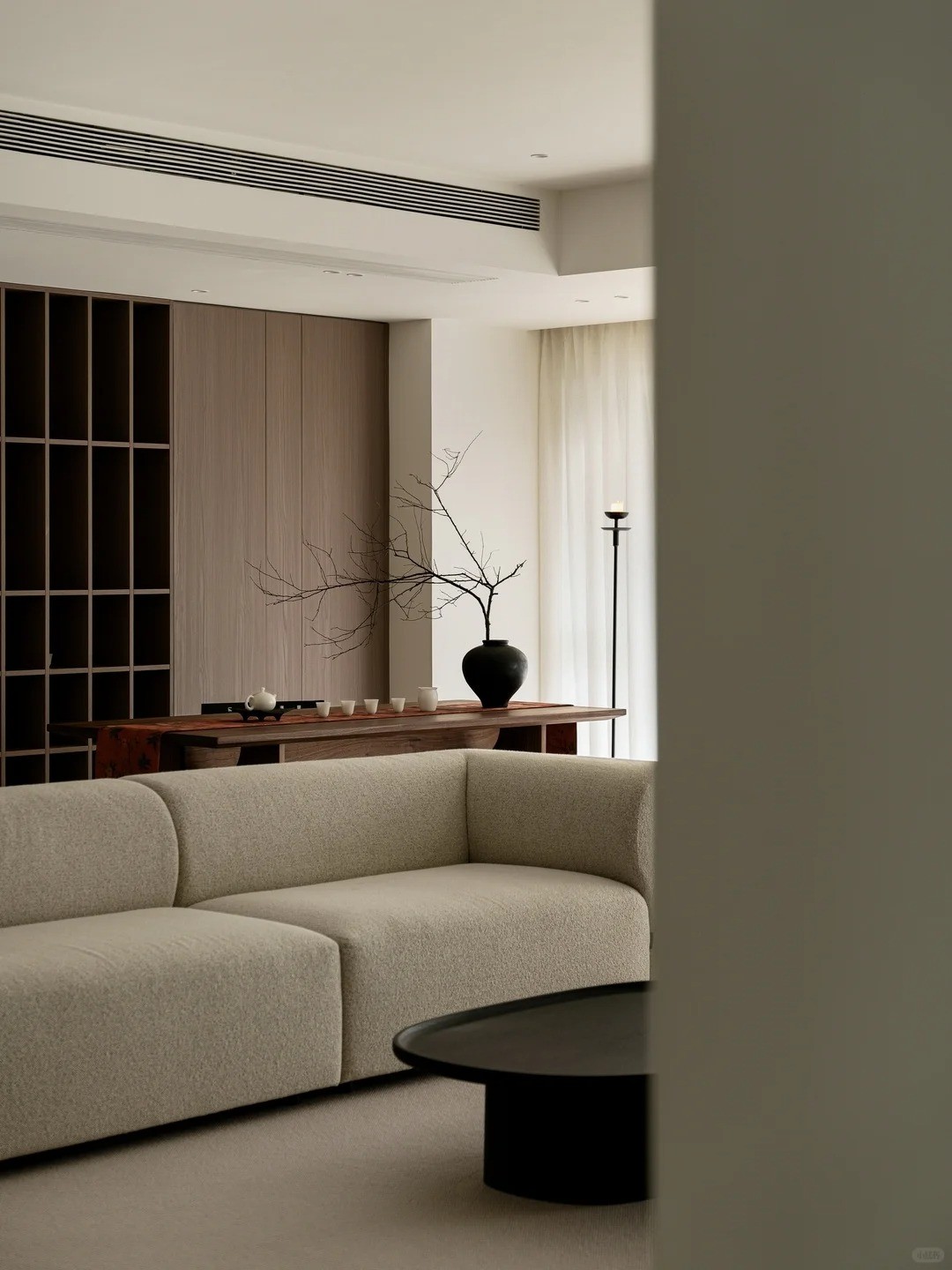 新中式風(fēng)格的家居布局講究對(duì)稱與平衡,同時(shí)又不失現(xiàn)代設(shè)計(jì)的靈活性??臻g劃分上常采用屏風(fēng)、隔斷等元素,營造出一種若隱若現(xiàn)的空間感。同時(shí),空間中常常運(yùn)用留白的設(shè)計(jì)手法,使空間更加通透、開闊。