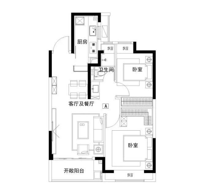 方正的戶型,南北透亮,東西寬綽,使得整個空間通風和采光俱佳