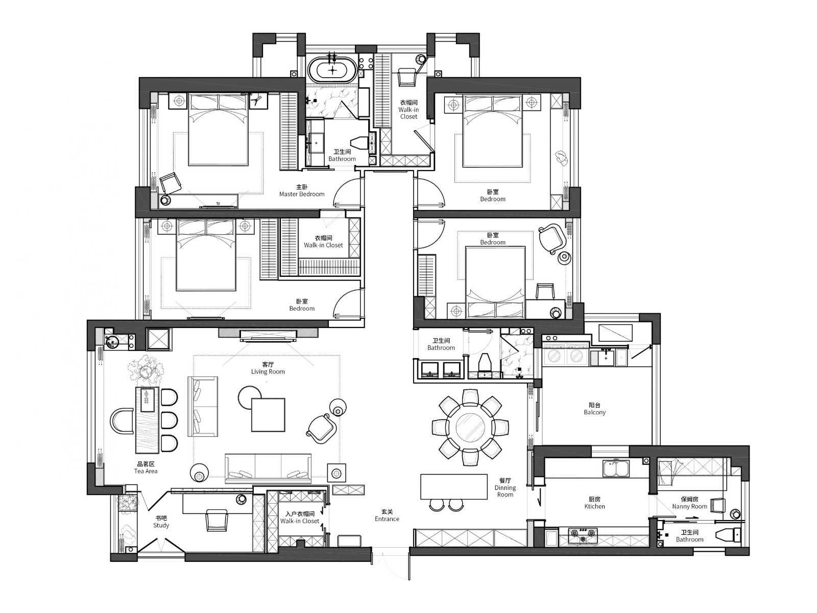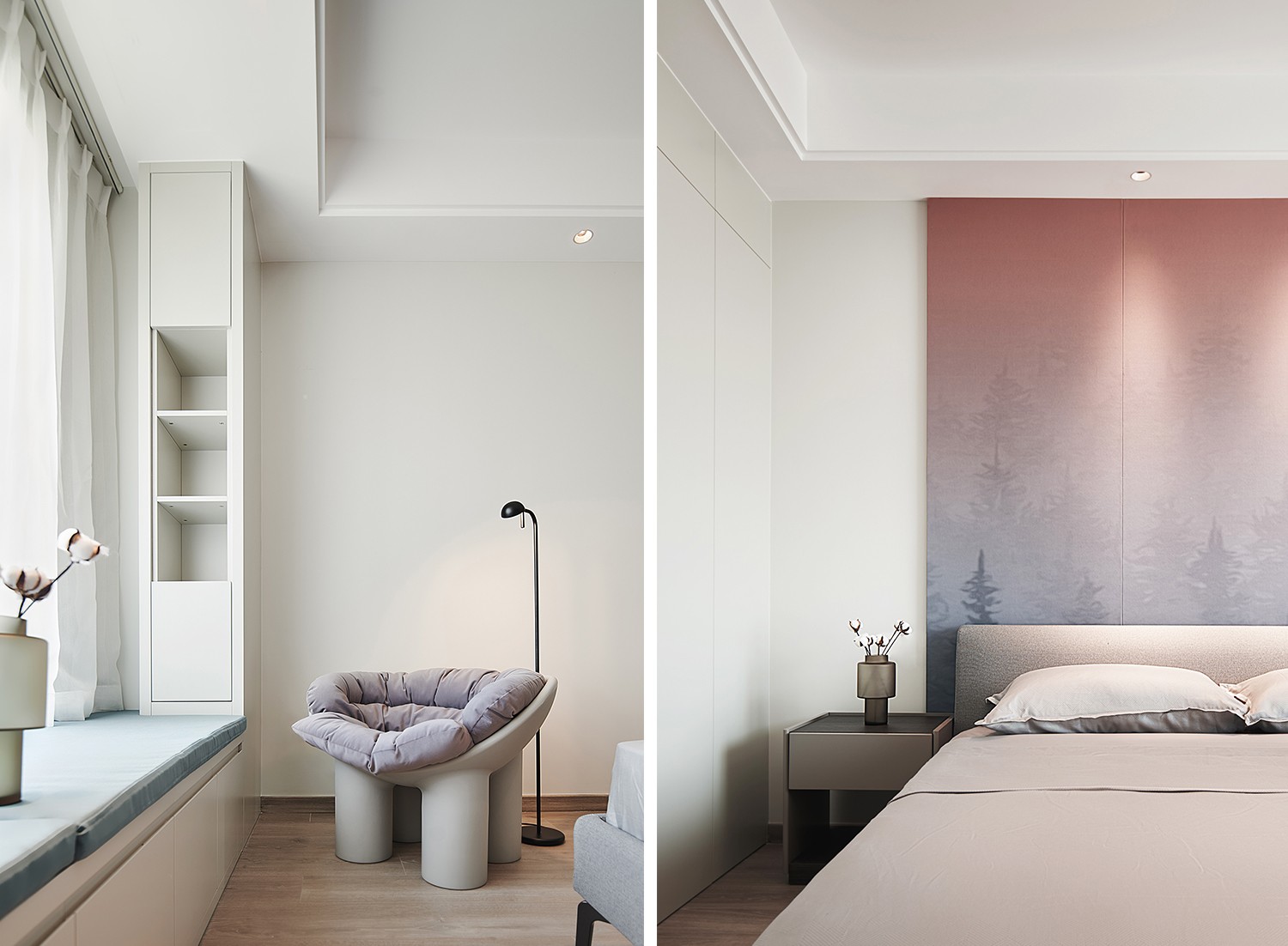 臥室大面積的留白,是對空間的克制,期許為生活找回不受束縛的自由感官,給予未來更多的想象以及最美好的居住暢想。