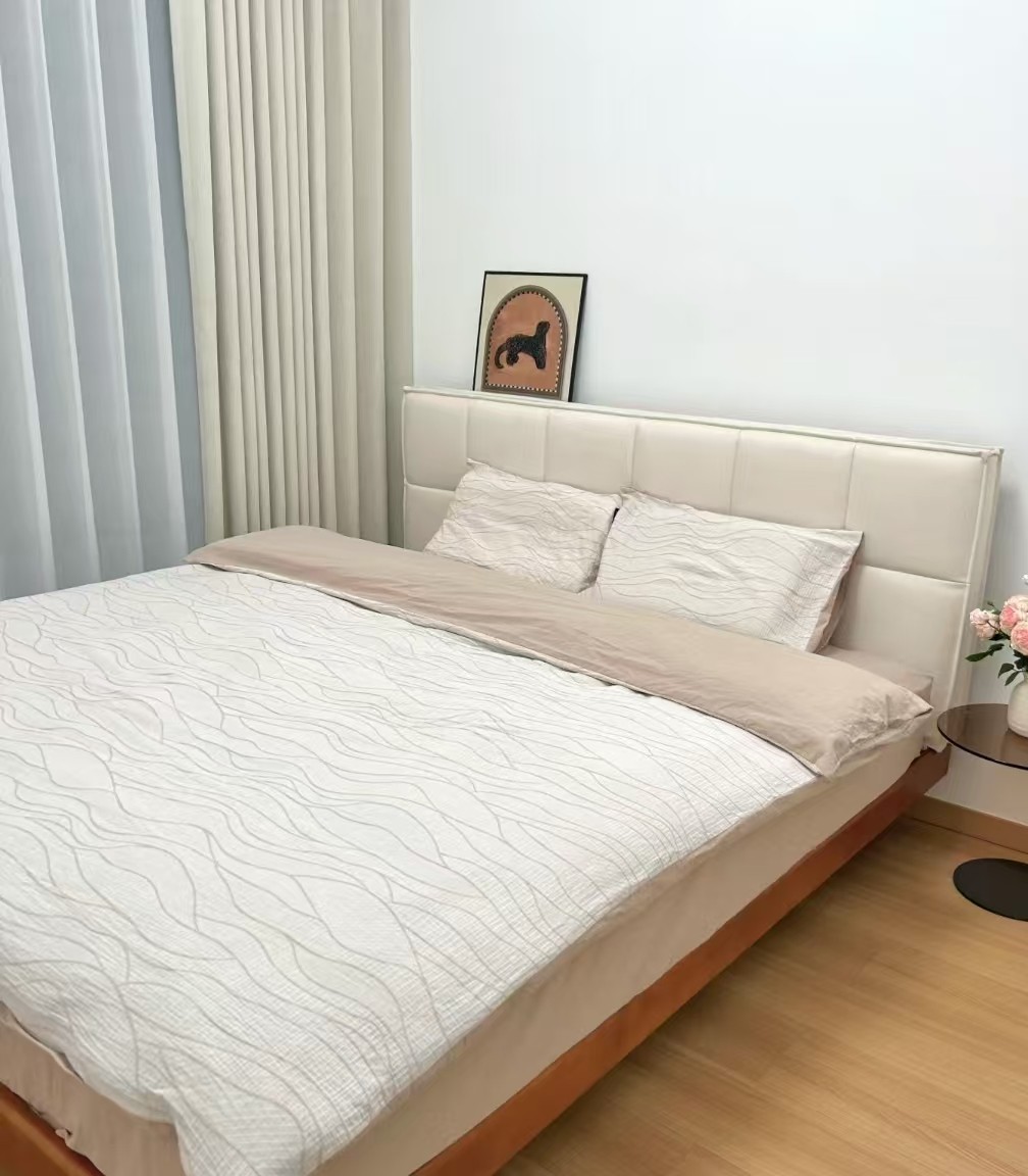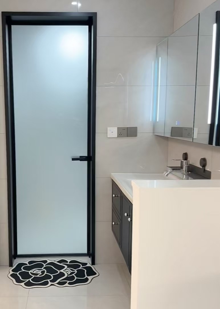客廳亮面灰色瓷磚,珍珠白乳膠漆,客廳陽臺打通,不做電視背景墻顯大寬敞