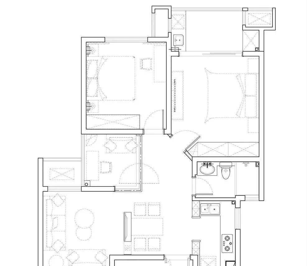 主臥,與陽臺連在一起,空間就會顯得開闊很多,陽臺作為洗衣、晾衣區(qū),吊頂還設(shè)有晾衣架。