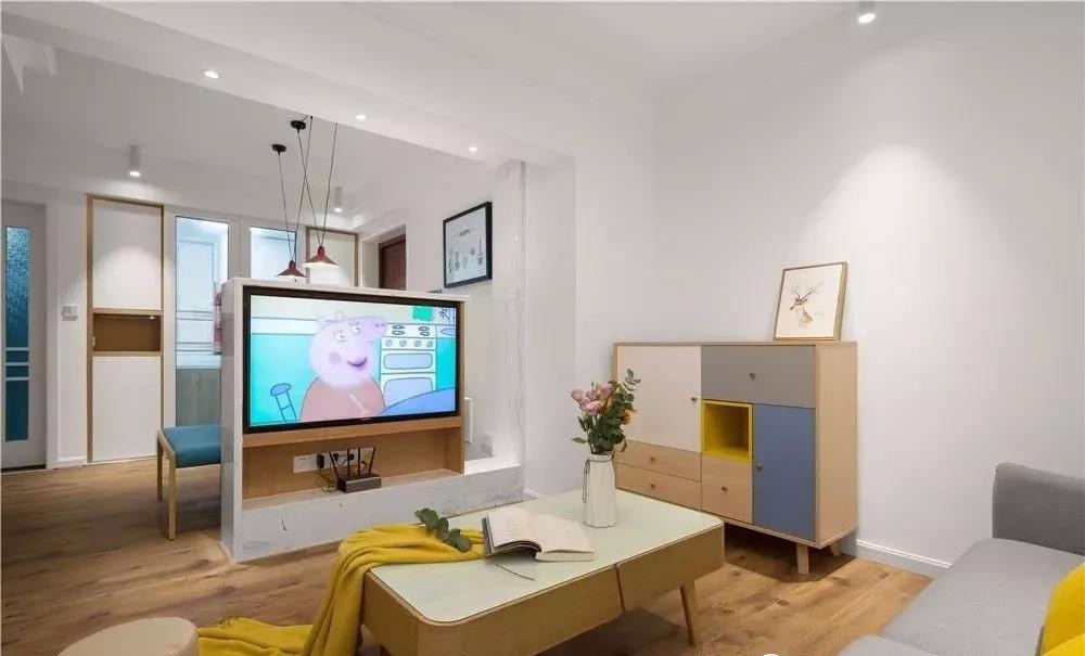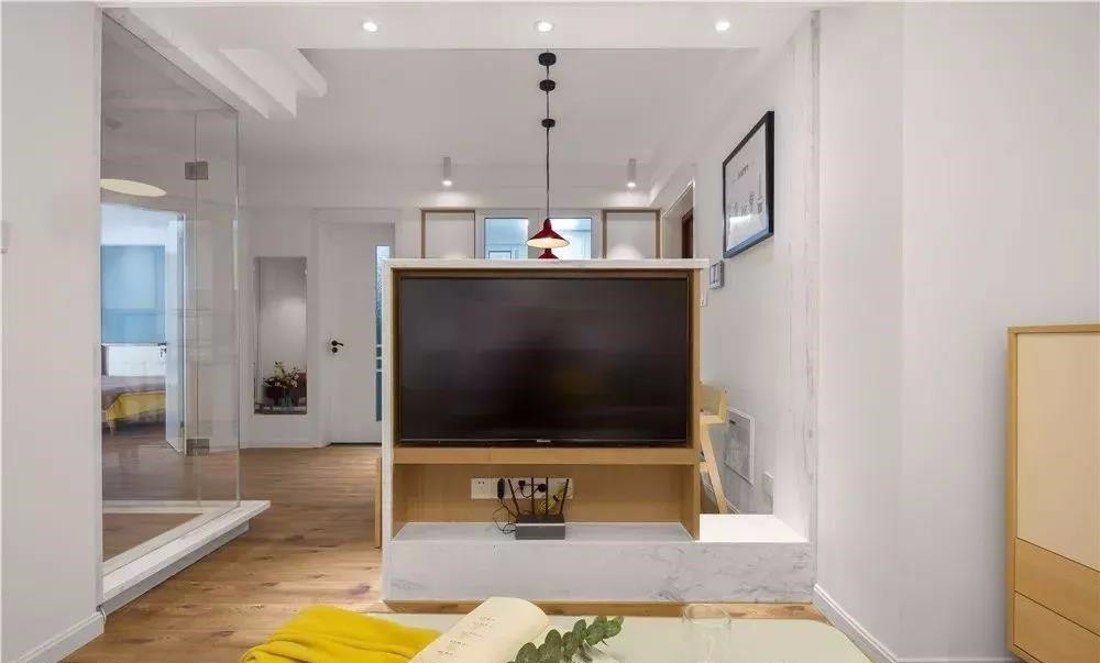 這是一套75平的新房,因為有孩子有老人,所以設(shè)計為三居,戶型本身不大,可想而知在設(shè)計上我們設(shè)計師也是用盡心思,盡可能簡約,實用。其中最個性型的應(yīng)該是客餐廳之間的隔斷了,采用嵌入式電視當(dāng)隔斷,還有玻璃書房的設(shè)計,更是顯得全屋設(shè)計通透,開闊。