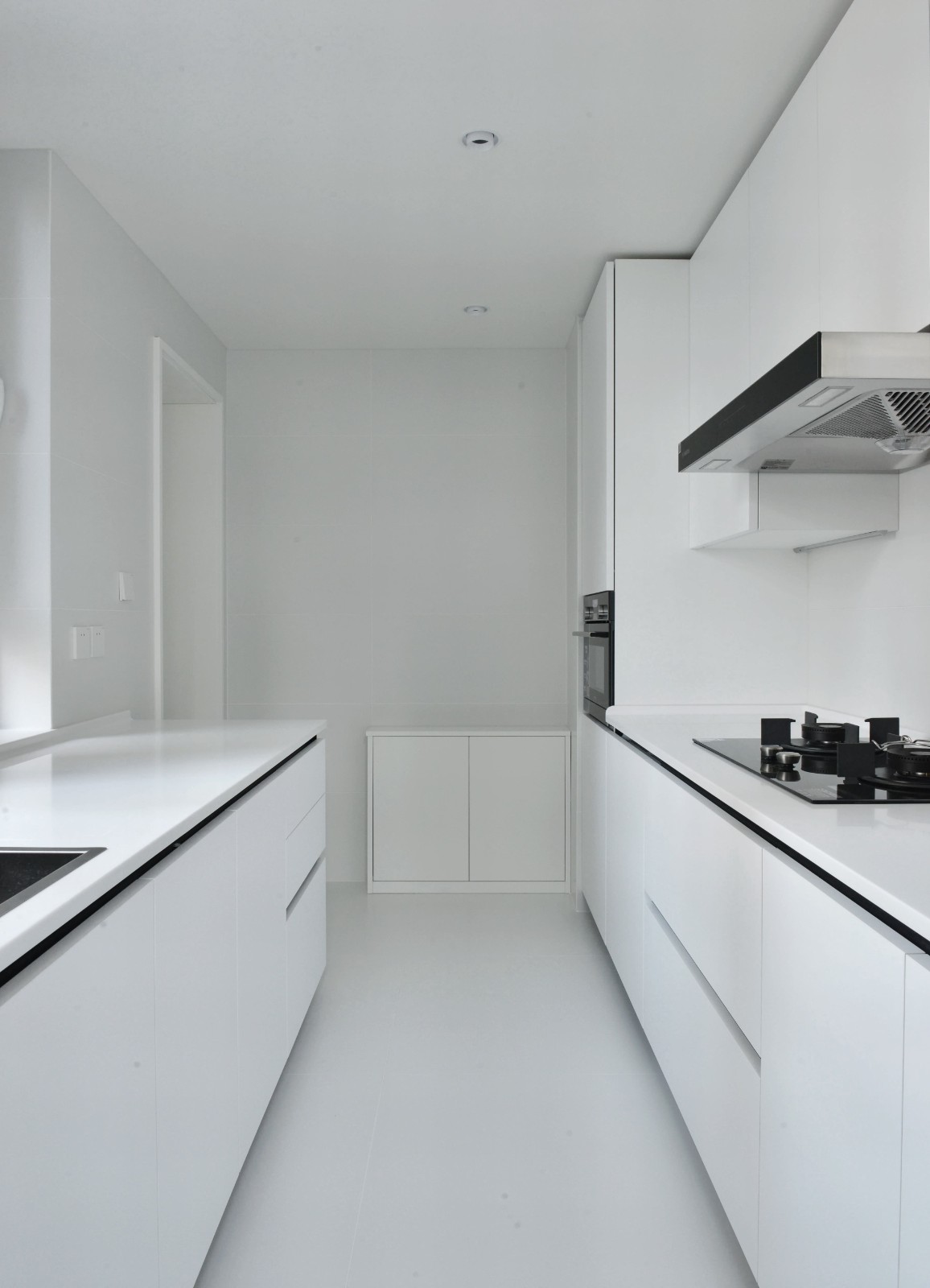 純白色的廚房,與墻面和其他材料色系統(tǒng)一