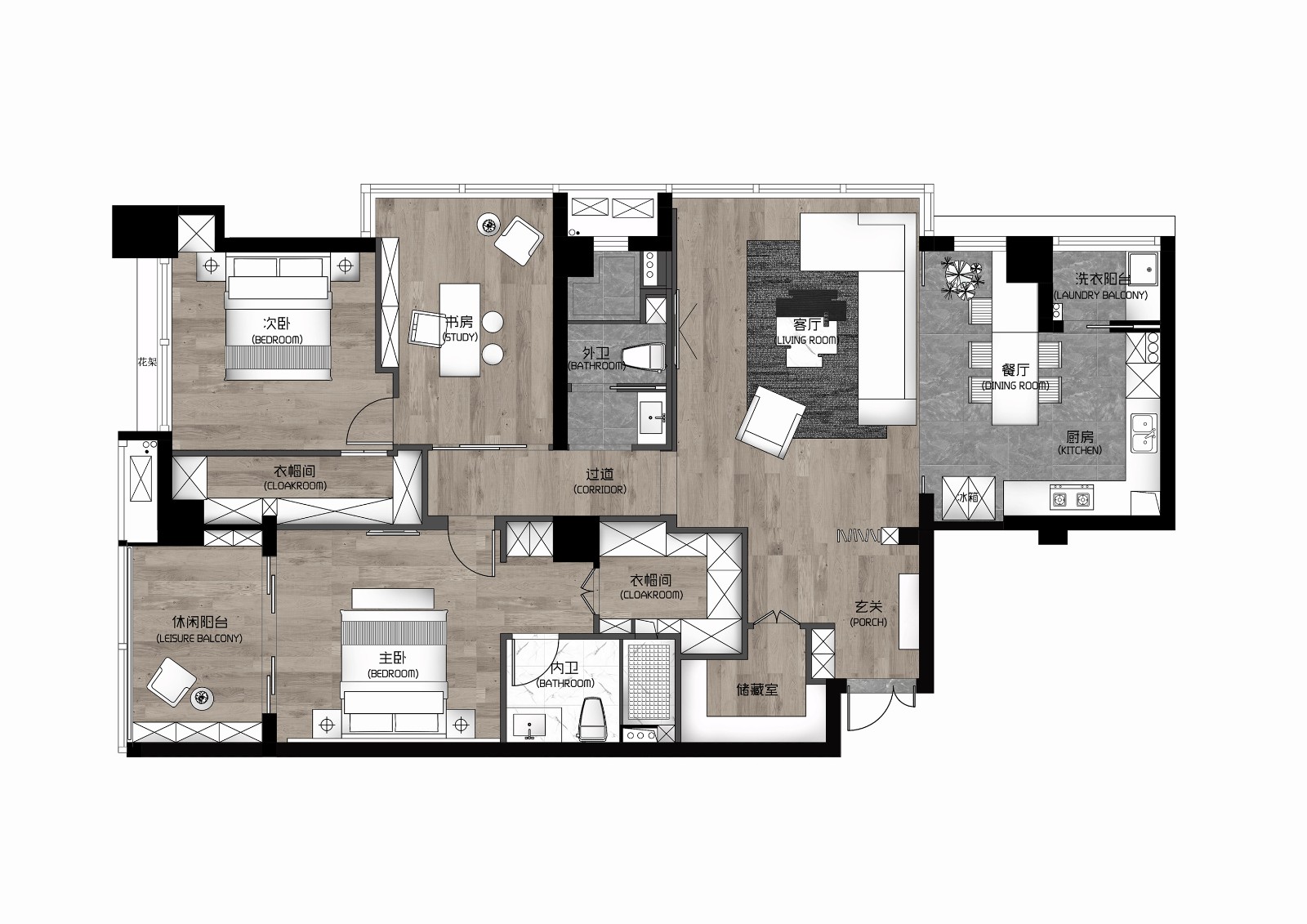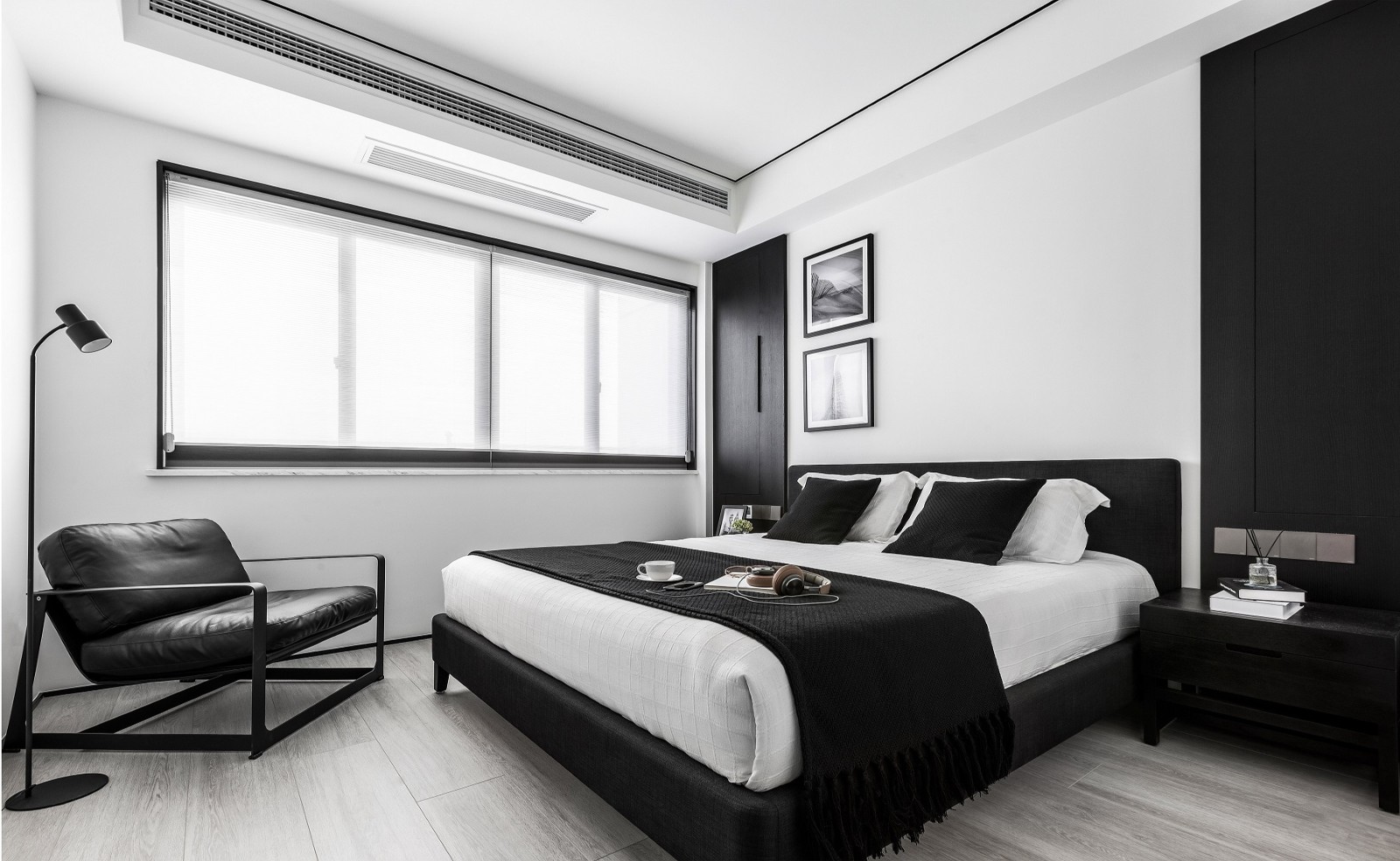 主臥延續(xù)客廳的黑白搭配風(fēng)格