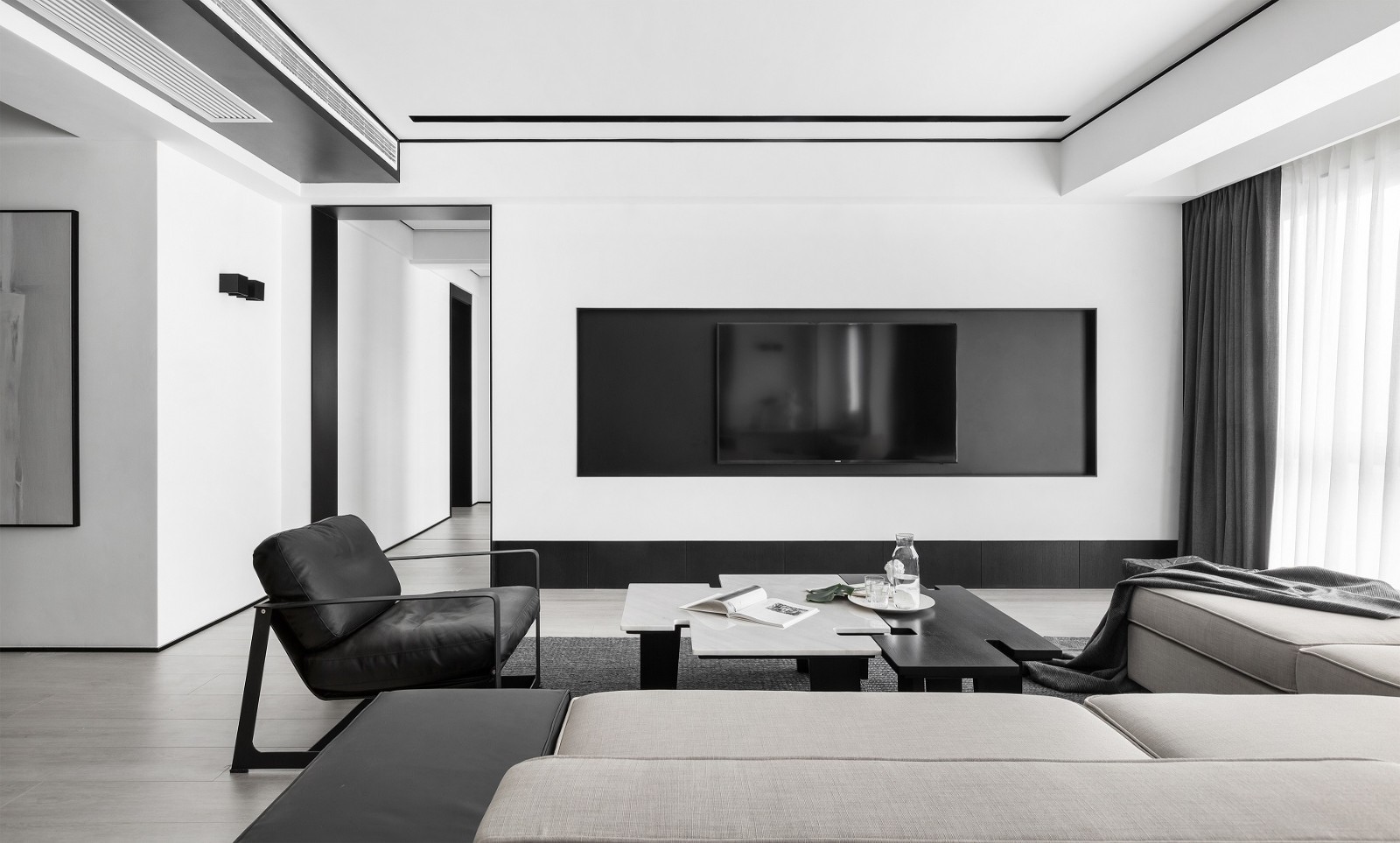 頂部無主燈設(shè)計,搭配簡約的墻面設(shè)計