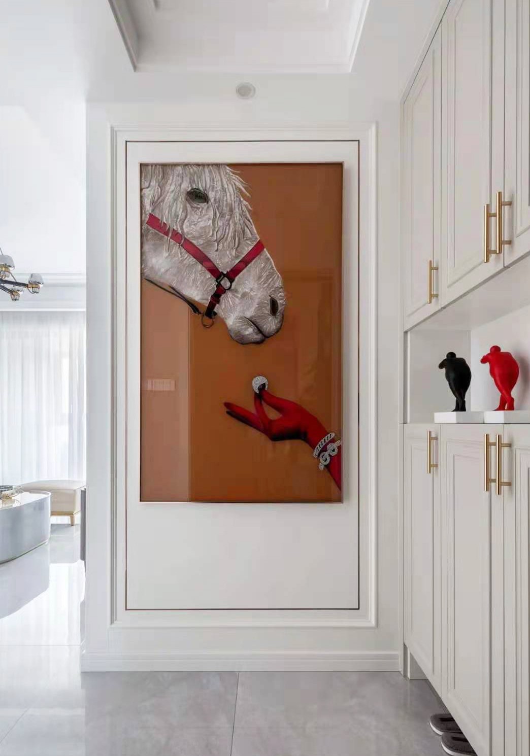 玄關(guān):進門即見玄關(guān)畫,琺瑯彩鑲鉆白馬 工藝精細潮流時尚,富貴之馬 馳騁千里