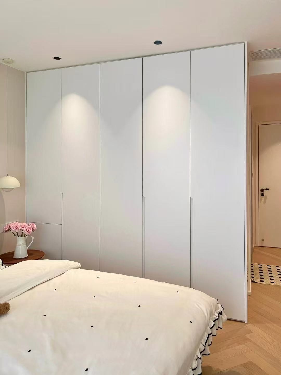 臥室簡單的白色柜子搭配人字拼地板 配上法式軟裝浪漫