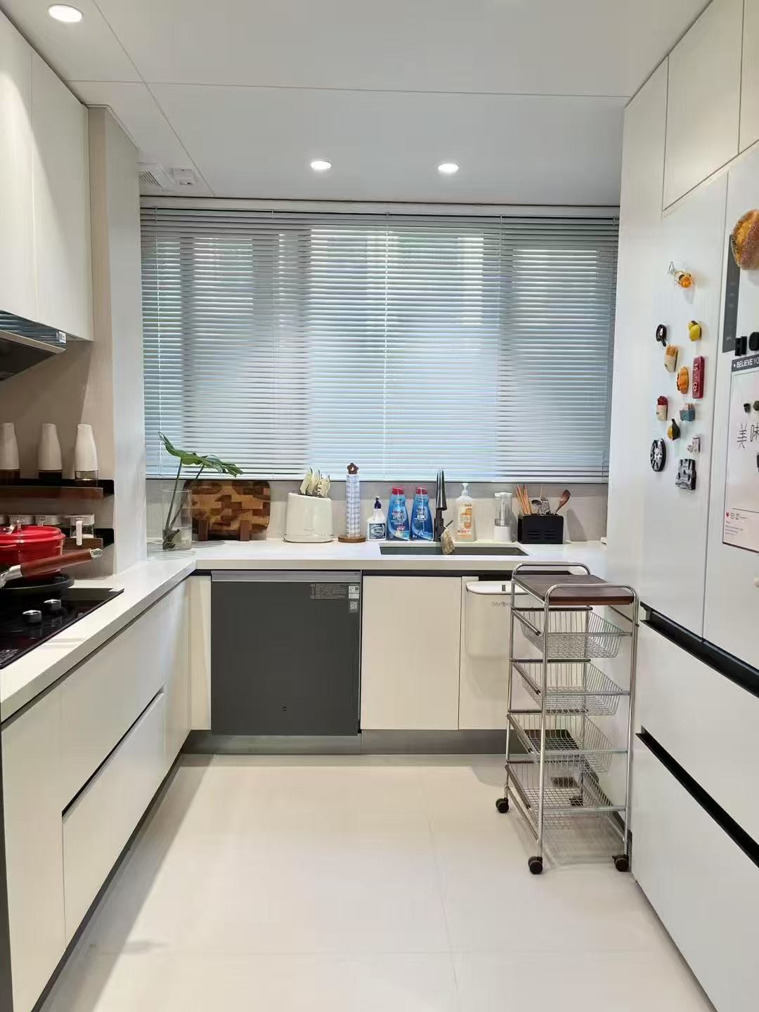 雙門冰箱設(shè)計在廚房里 使用方便且內(nèi)嵌冰箱美觀