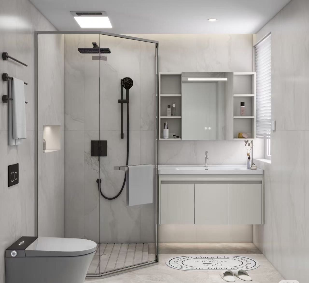 衛(wèi)生間采用鉆石型淋浴房 淺色地磚干凈