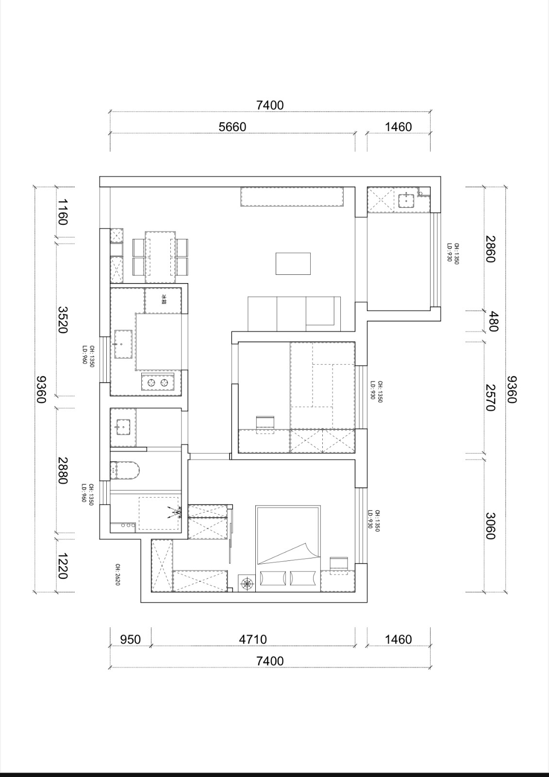 2房1廳戶型 改造方案將廚房縮小,利用走道和廚房擴(kuò)出來的空間 增加一個(gè)餐廳