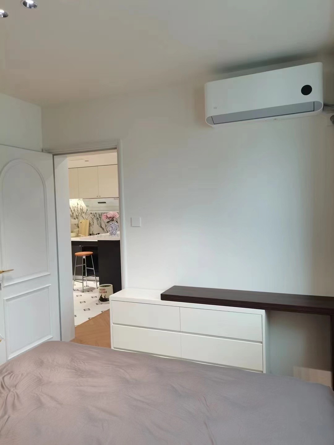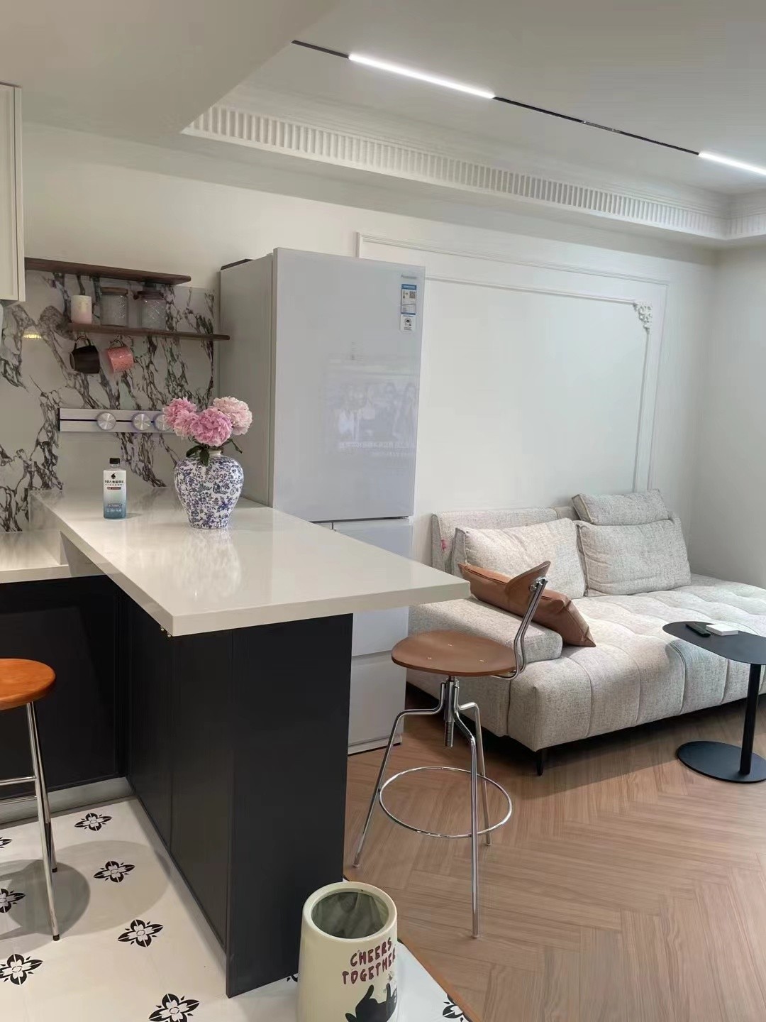 從臥室的這個(gè)角度剛好能看到吧臺的一束鮮花,美好的心情從美麗的視覺開始