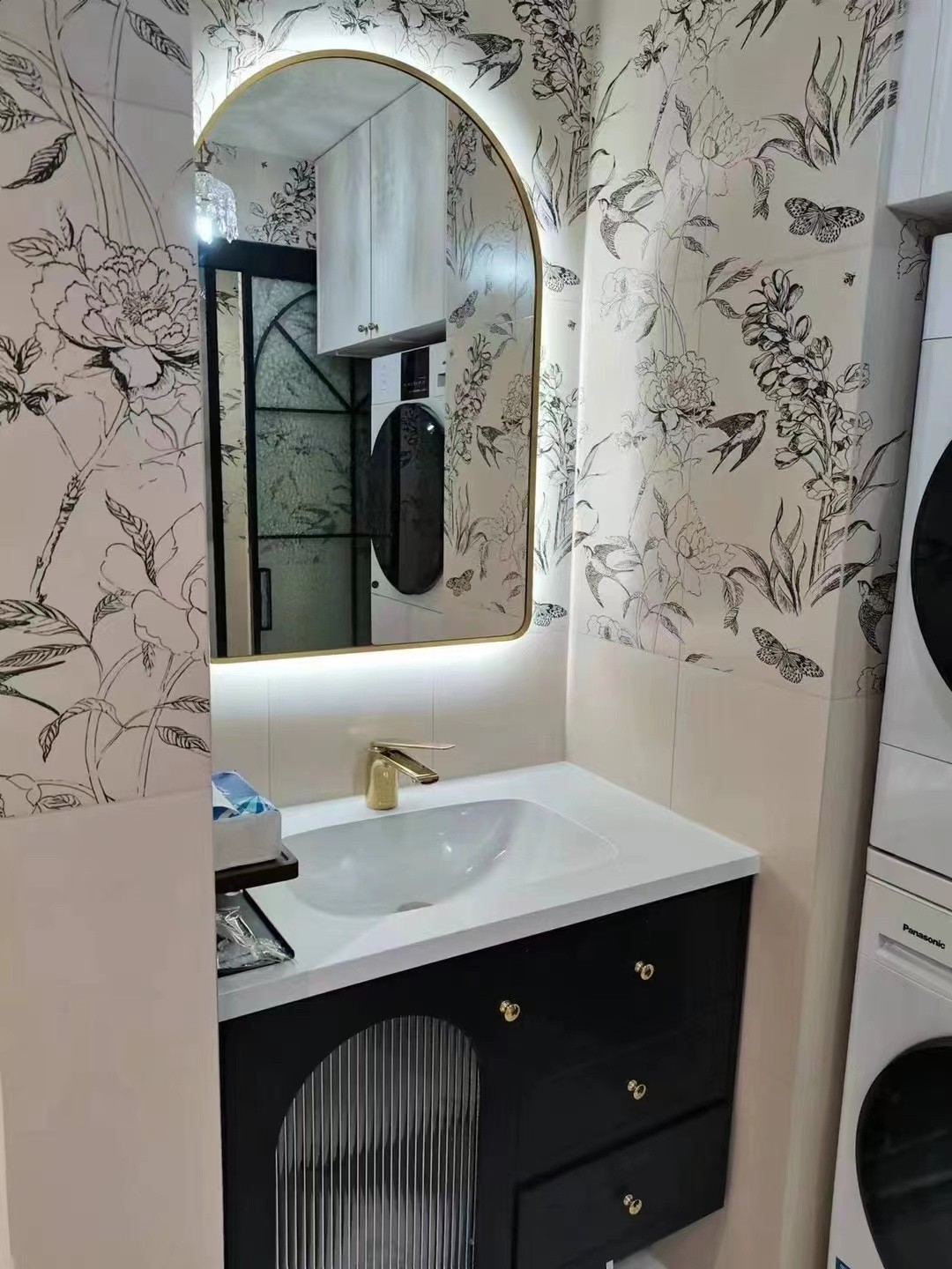 花磚、奶油磚再配以法式風(fēng)的臺盆柜,美感十足