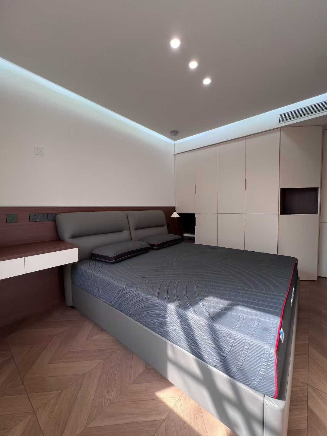 定制柜隱藏了儲物空間,同時預留了小型設(shè)備的嵌入位,兼顧收納與實用性;自然光透過窗戶灑入,讓空間更顯通透放松。