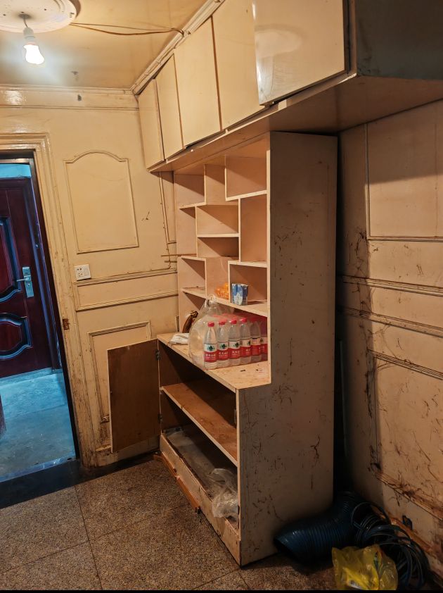 敲墻第二天,一早物業(yè)聯(lián)系的收木質(zhì)櫥柜的就又等在門口了,一天木制櫥柜及吊頂,廚房和衛(wèi)生間門等都敲掉了,收木質(zhì)品的也及時(shí)清理了拆下來的木板并拉走了,老師傅速度可以的,動作很快。