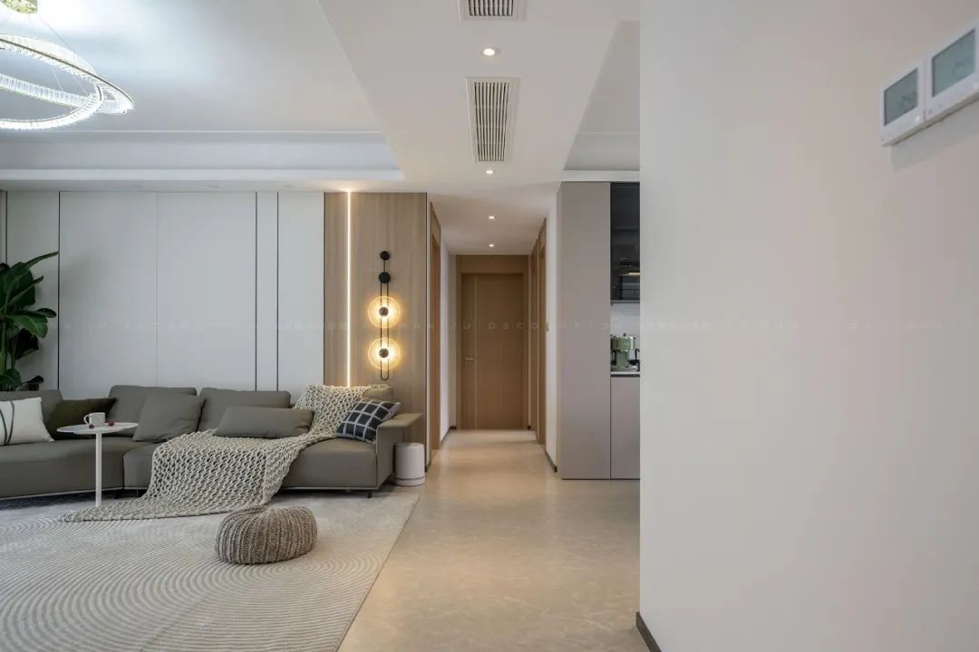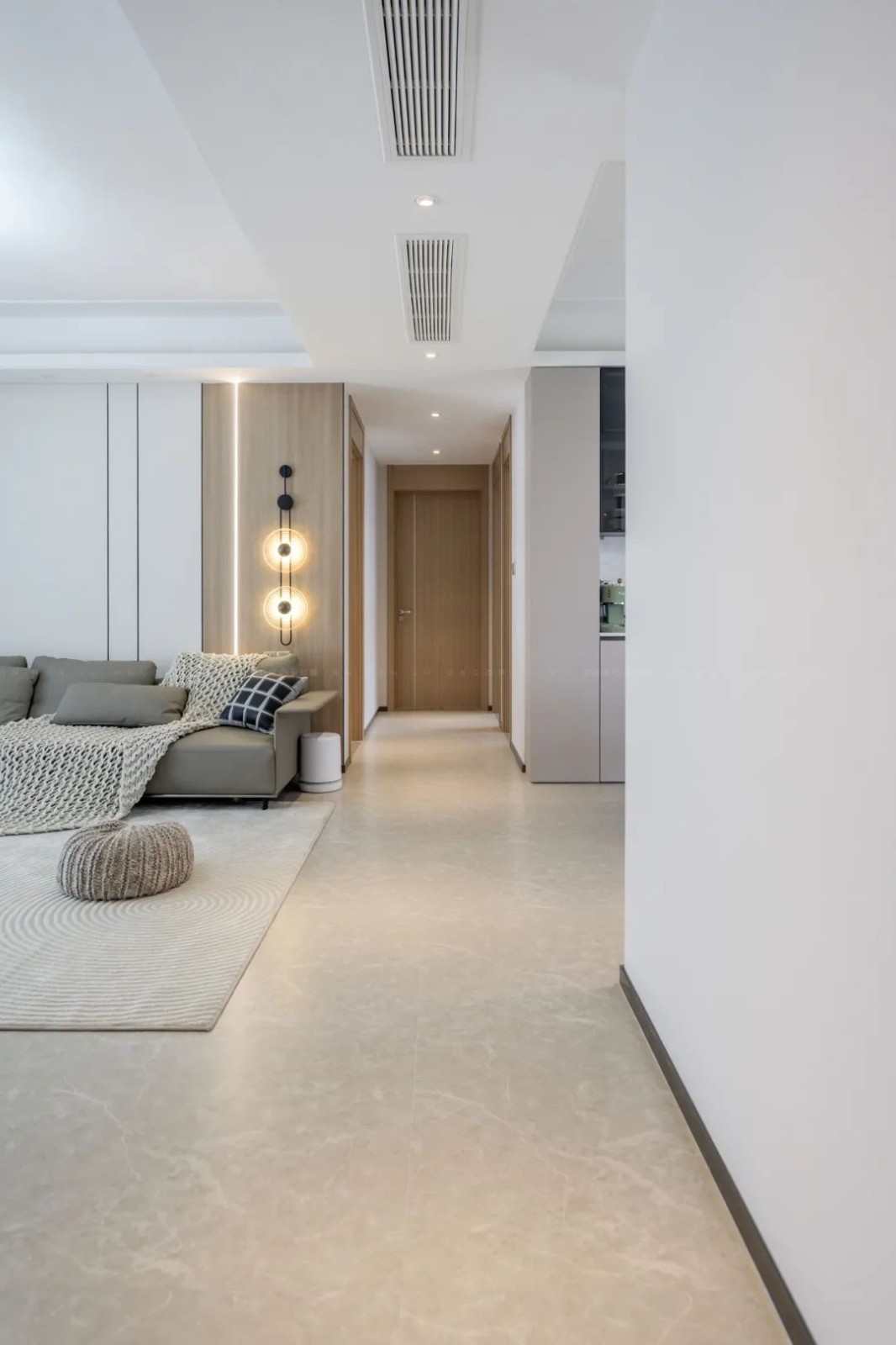 1??.黃色地磚紋理較大,家居搭配和軟飾就不能再用大紋理,米灰色定制柜搭配木門同色護(hù)墻板,地面的感覺就會弱化很多; 2??.增加收納不僅僅只是定制柜子那么簡單,而是要綜合考慮到尺寸、功能以及美觀度,缺了上述任何一種,都會有所缺憾,所以本案例在這幾個方面下足了功夫;