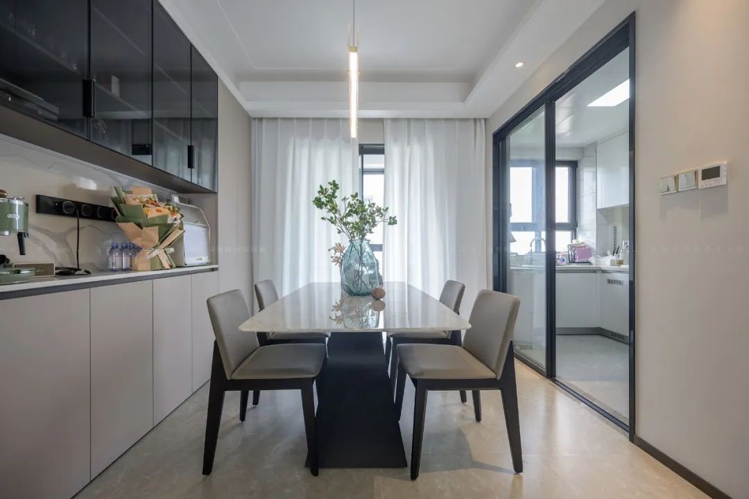 側(cè)面定制餐邊柜,極簡設(shè)計無拉手,秉承的原則就是實用和美觀。