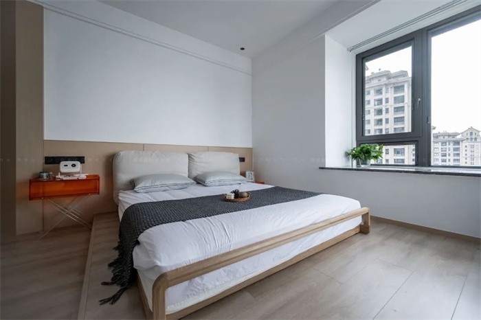 次臥室不大,陽臺打通后基于實際情況,沒做地面材質(zhì)通鋪處理,但并不影響整體空間的通透性