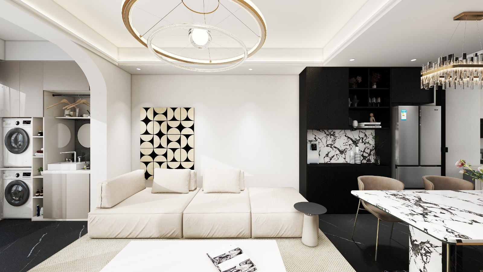 后現(xiàn)代簡(jiǎn)約黑白灰客餐廳。