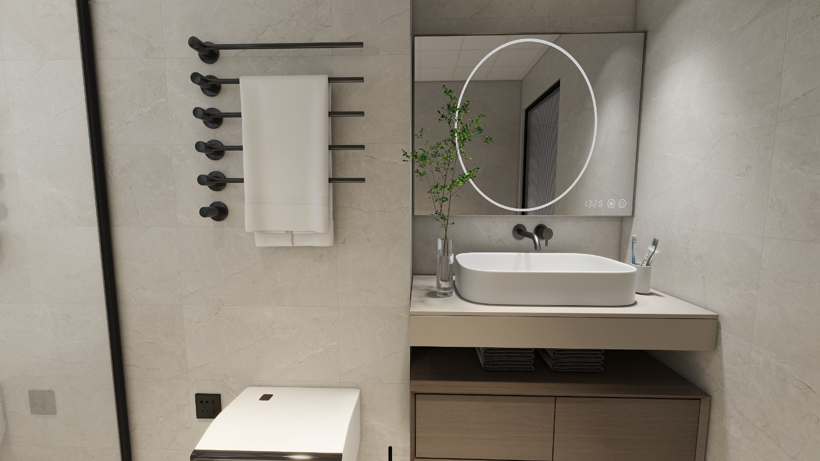 后現(xiàn)代簡(jiǎn)約黑白灰衛(wèi)生間。
