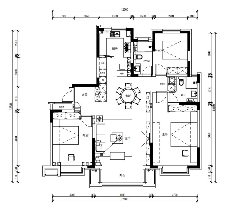 本戶型是一個(gè)三室兩廳兩衛(wèi)的戶型,在考慮了業(yè)主的裝修需求后,又對(duì)整體房屋空間進(jìn)行了一個(gè)整體的布局,使得每個(gè)空間獨(dú)立又統(tǒng)一,視覺(jué)效果非常開(kāi)闊大氣;