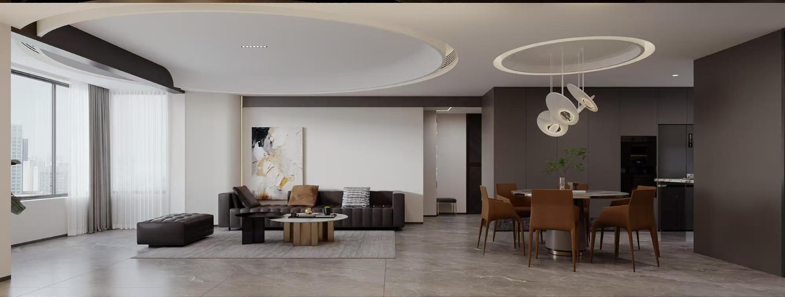 將客餐廳融為一體,加上橢圓形吊頂,顯得客廳看起來(lái)非常的大氣