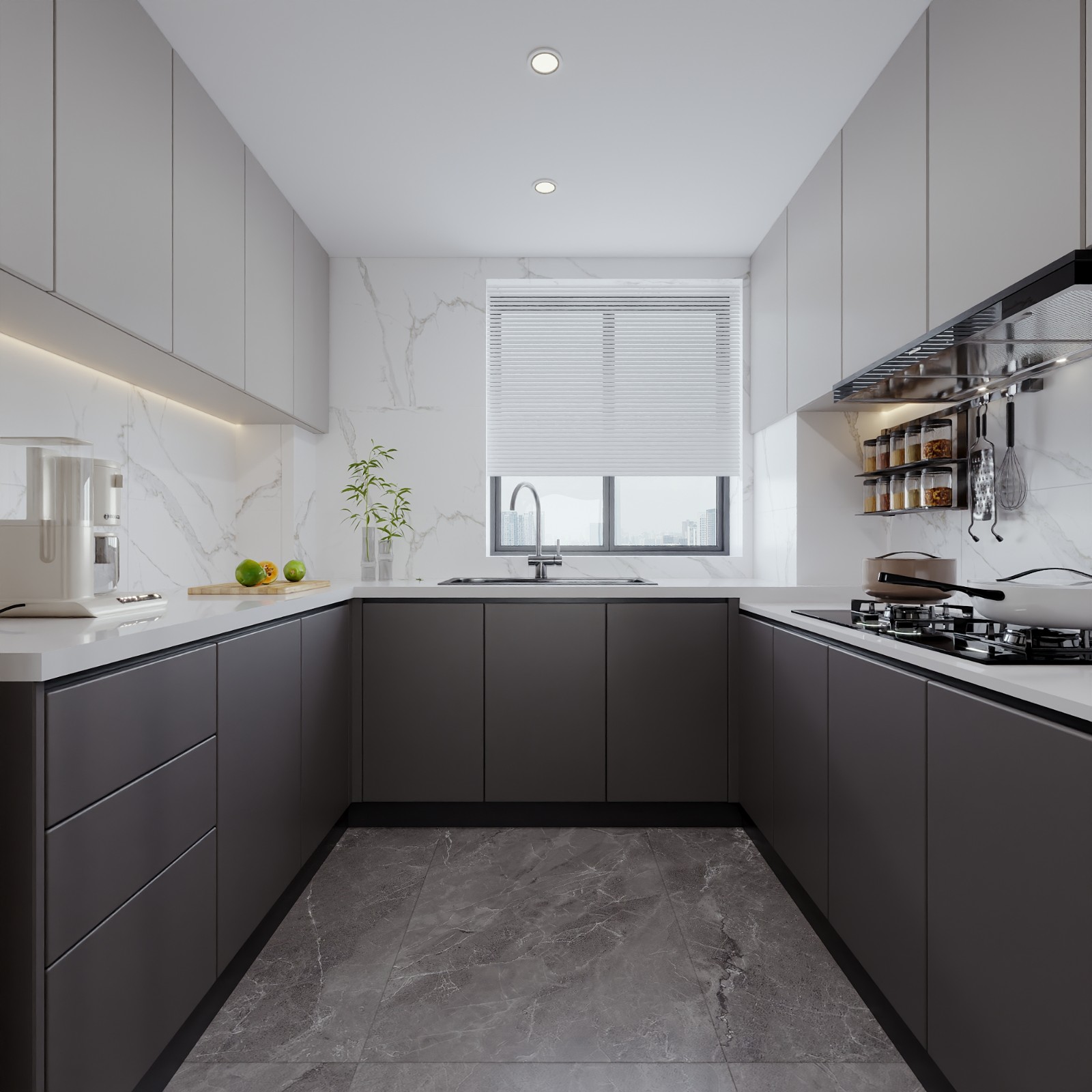 廚房采用的是U型設(shè)計(jì)的布局,充分利用了空間的距離與尺寸,并且整個(gè)廚房視野開(kāi)闊明亮
