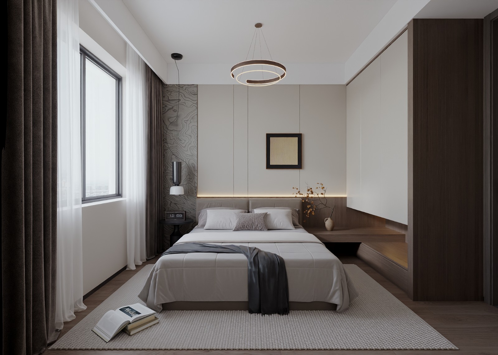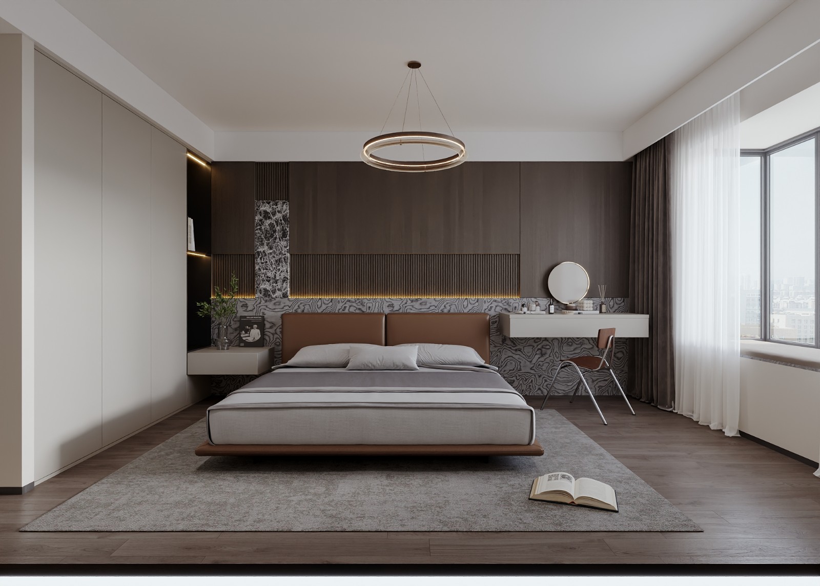 主臥加入了背景墻的設(shè)計(jì),使得空間繁而不雜