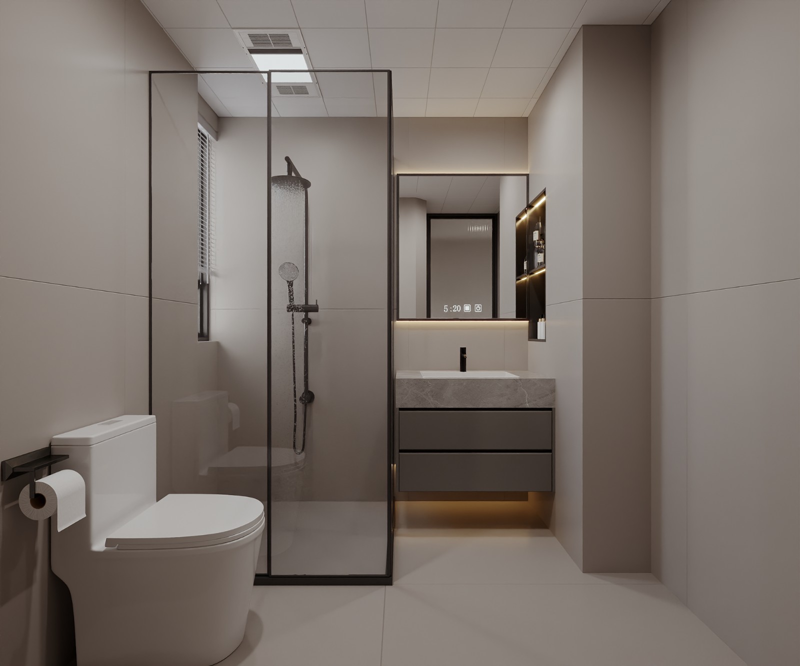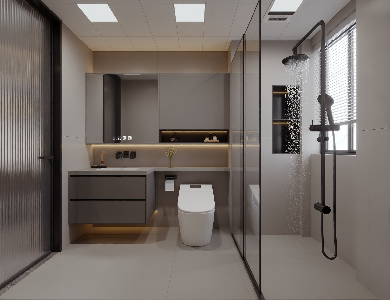 主衛(wèi)利用整體空間做了一個(gè)L型淋浴房,馬桶區(qū)域的空間顯得很開(kāi)闊,不用擔(dān)心可能擁擠的使用感