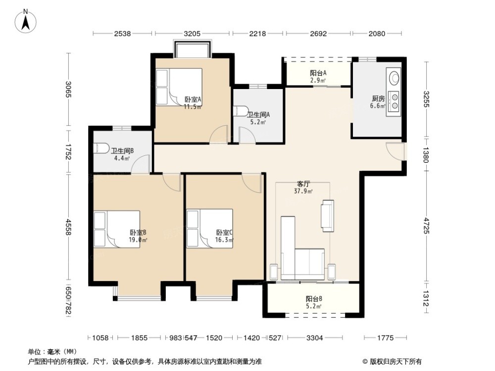 三房?jī)蓮d,現(xiàn)代簡(jiǎn)約風(fēng)格