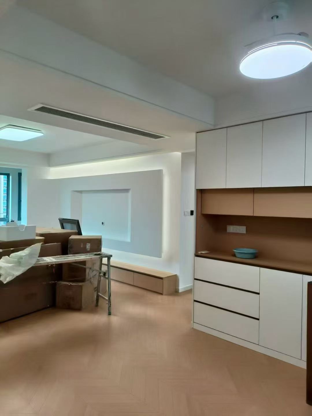 整體以奶白***術(shù)漆墻面為底,通鋪淺橡木實木地板,搭配圓弧線條的原木茶幾與奶油色布藝沙發(fā),弱化棱角感??蛷d飄窗臺鋪軟墊,擺原木小邊幾;臥室用原木風嵌入式衣柜,配奶杏色床品與木質(zhì)吊燈。局部點綴綠植與藤編收納筐,整體色調(diào)柔和溫暖,像裹著陽光的“居家感”空間,治愈又舒適。
