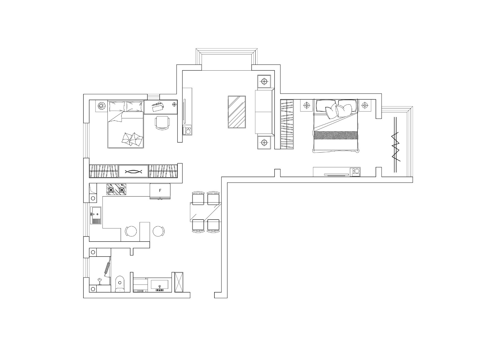 兩室戶型,客戶喜歡北歐風(fēng)格,戶型過道較長(zhǎng),客戶想要一個(gè)開放式的廚房
