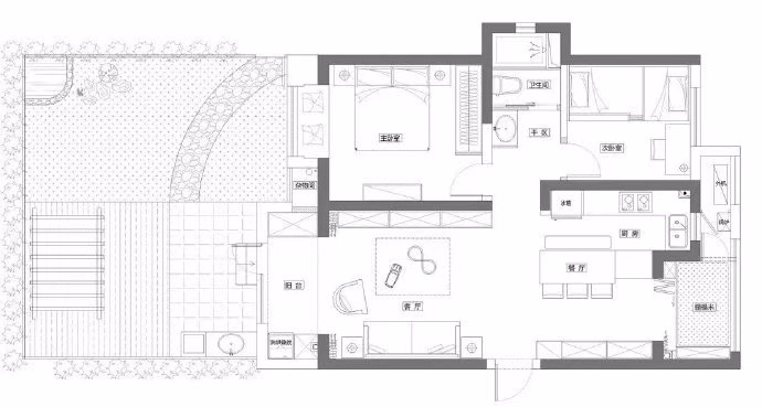 臥室基本上偏極簡,主要靠后期的軟裝區(qū)搭配。