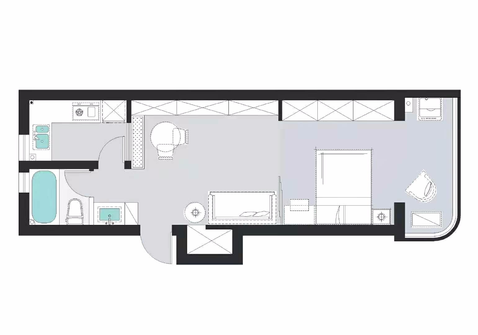 衛(wèi)生間使用干濕分離。合理的利用了空間