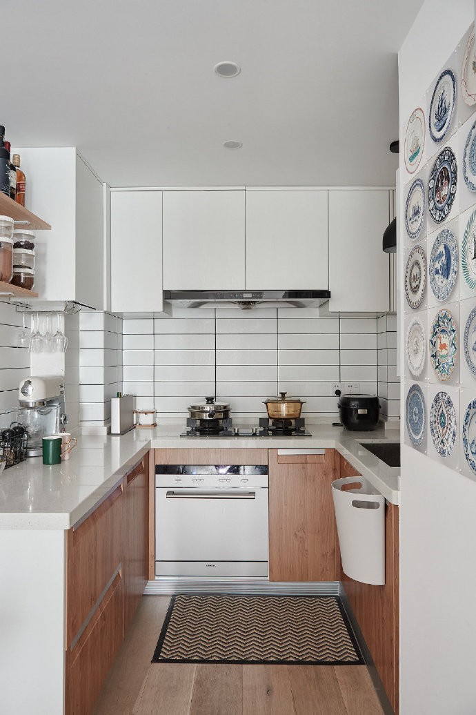 廚房采用U型櫥柜設計,柜體采用對撞色,清新、干凈