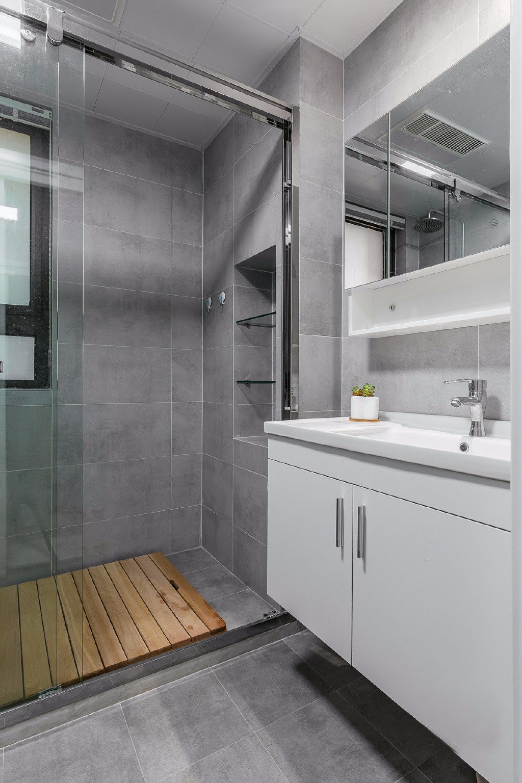 衛(wèi)生間干濕分離,在淋浴區(qū)做了壁龕,可以增加儲(chǔ)物空間。