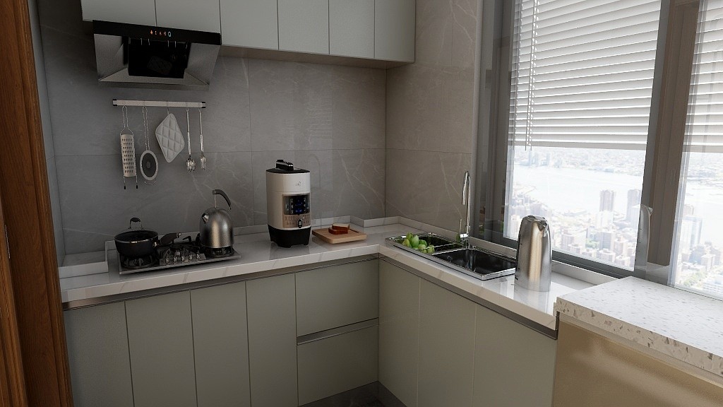 現(xiàn)代極簡(jiǎn)風(fēng)格的廚房。