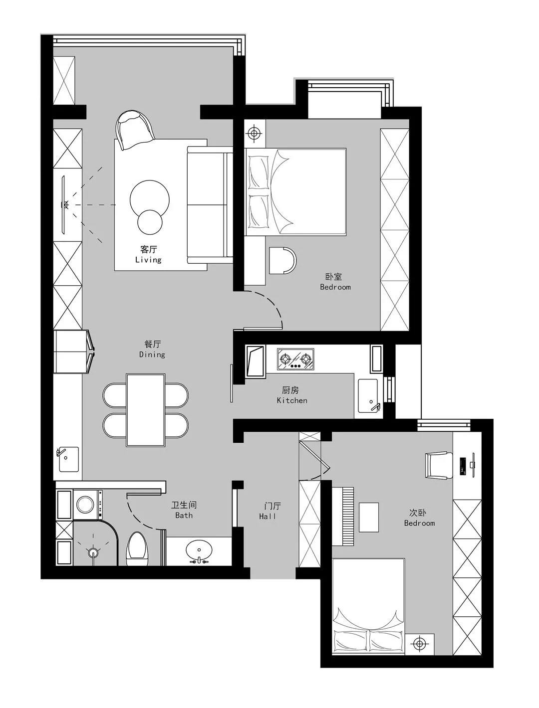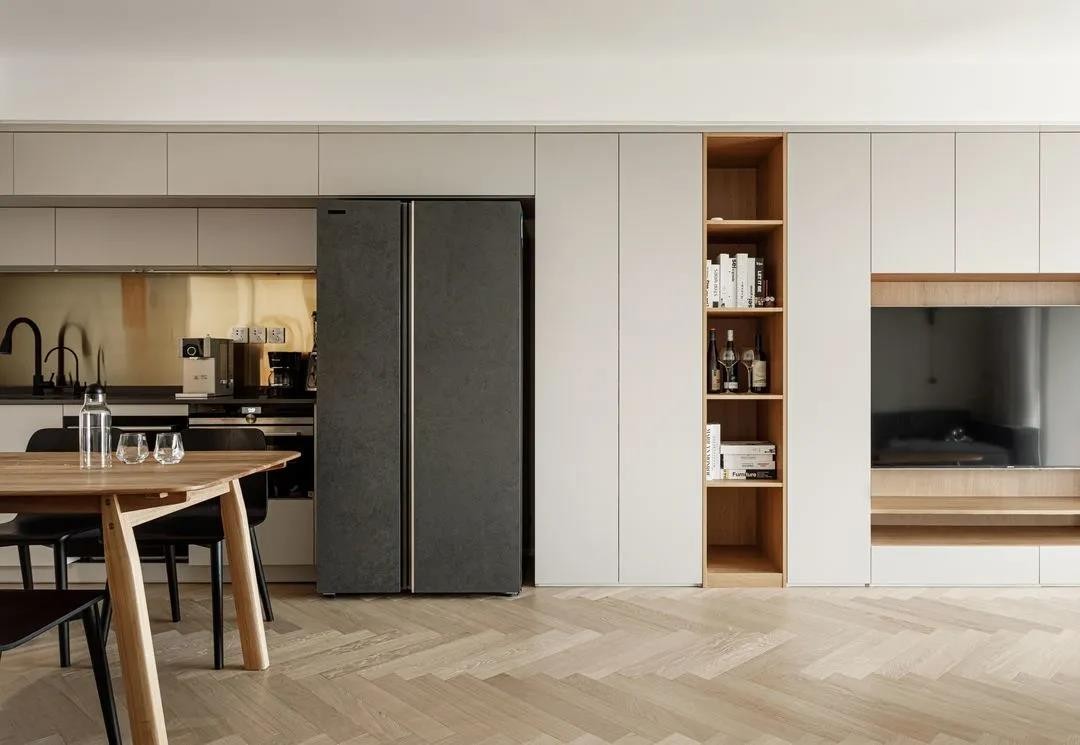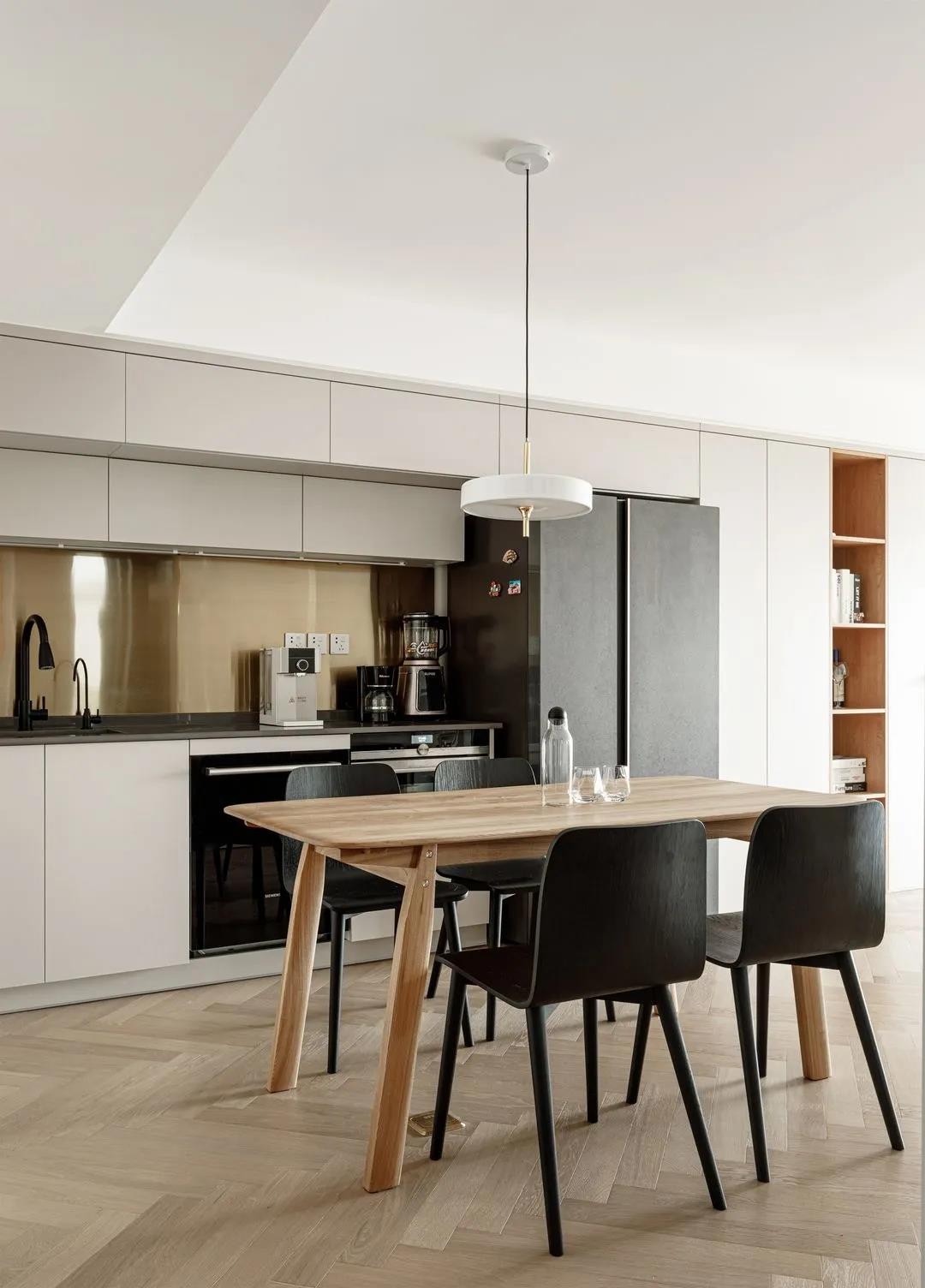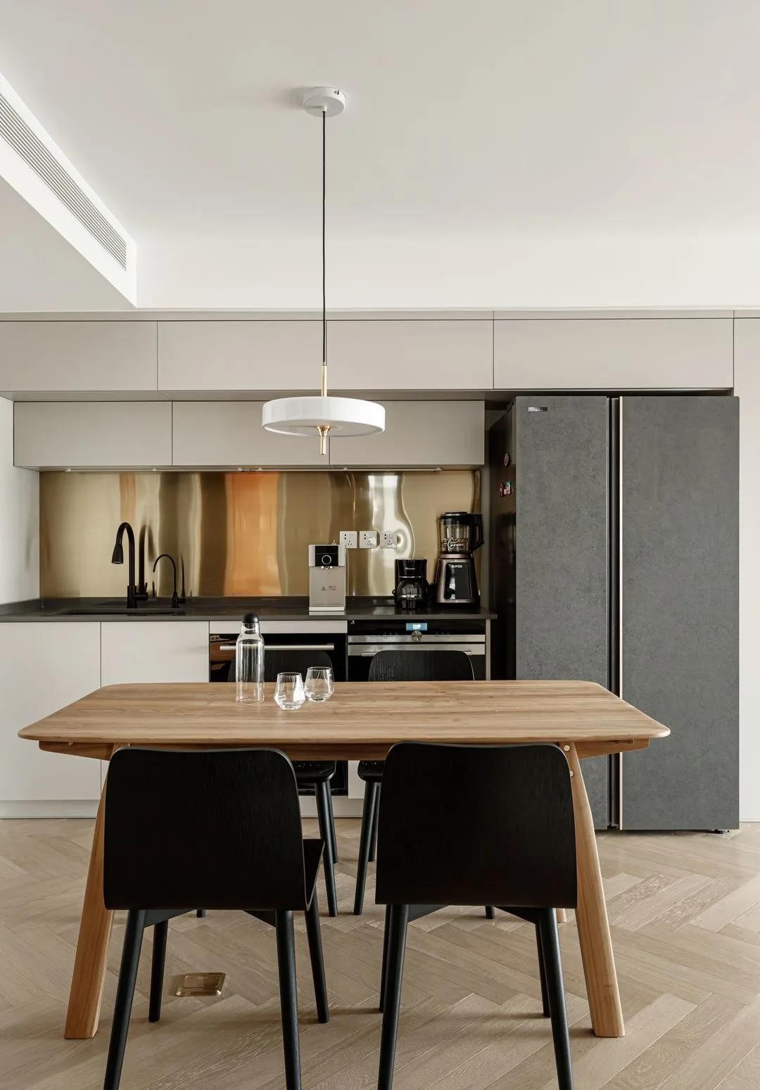 采用了雙廚房的的設(shè)計理念:西廚+中廚,在餐廳區(qū)域為開放式西廚