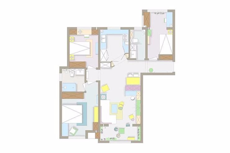 各個(gè)空間方正,衛(wèi)生間有窗戶,利于排濕,不會使?jié)駳膺M(jìn)到室內(nèi)。臥室位置合理,能夠保證足夠安靜,客廳的聲音不會影響臥室的休息;衛(wèi)生間位置合理,使用起來動線比較合理;廚房位于門口,方便使用和油煙的排出。各個(gè)功能區(qū)間面積大小都比較合理,后期使用起來比較方便,居住舒適度高。