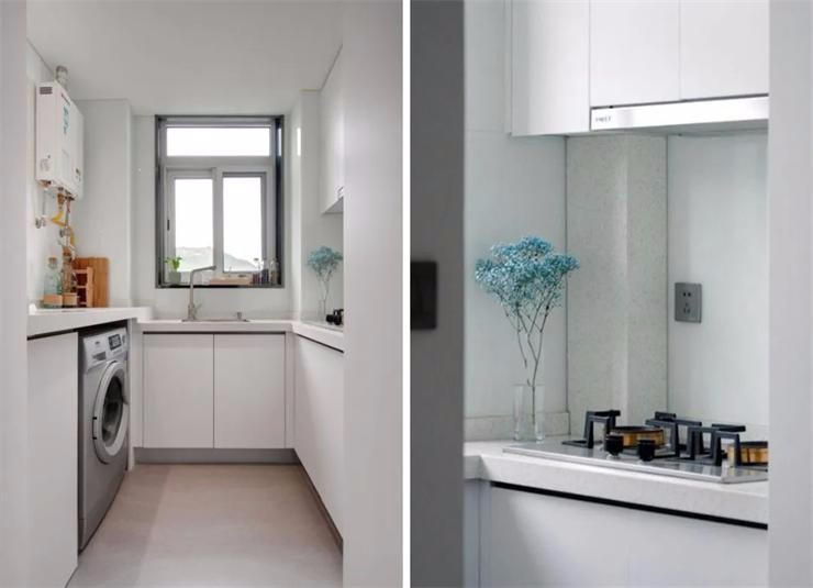 廚房面積雖小,但五臟俱全,除了常用電器以外,熱水器和洗衣機(jī)也安放在櫥柜里,整體干凈整潔。? ?