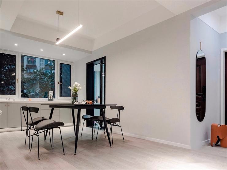 餐廳寬敞明亮,還另外設(shè)計了一個西廚。