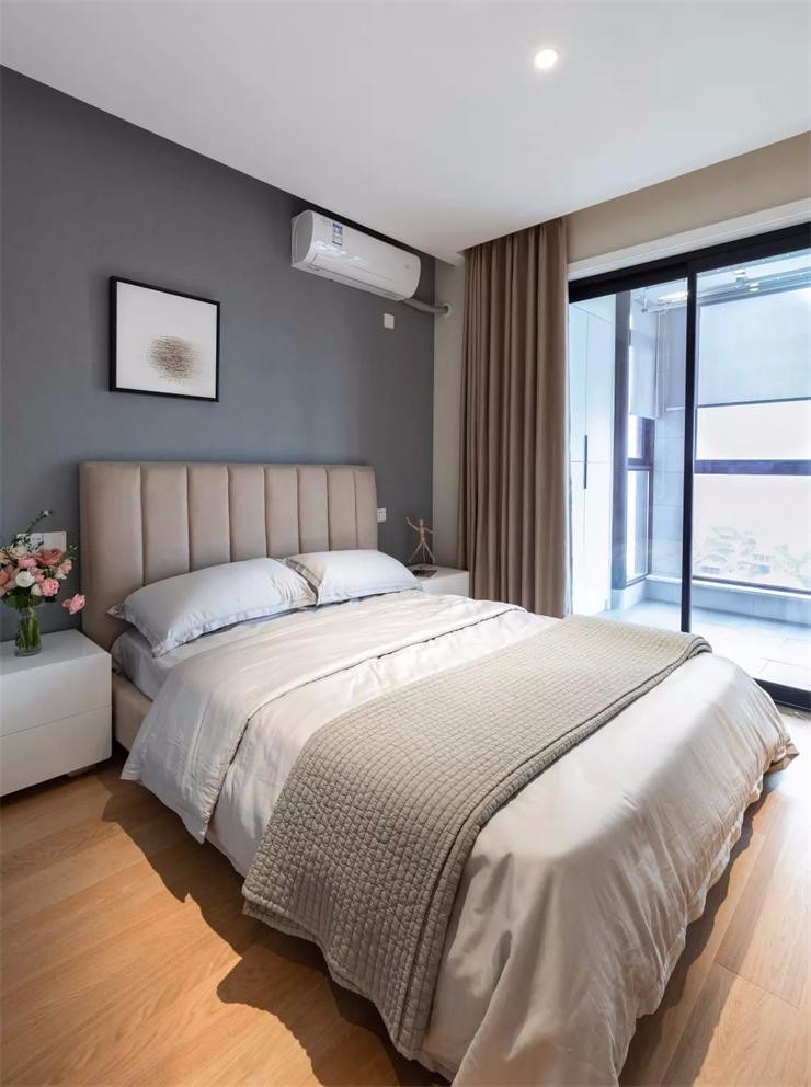 臥室墻面刷上浪漫柔美的香芋色,窗簾也選擇了貼合臥室色調(diào)的拼色風(fēng)格。