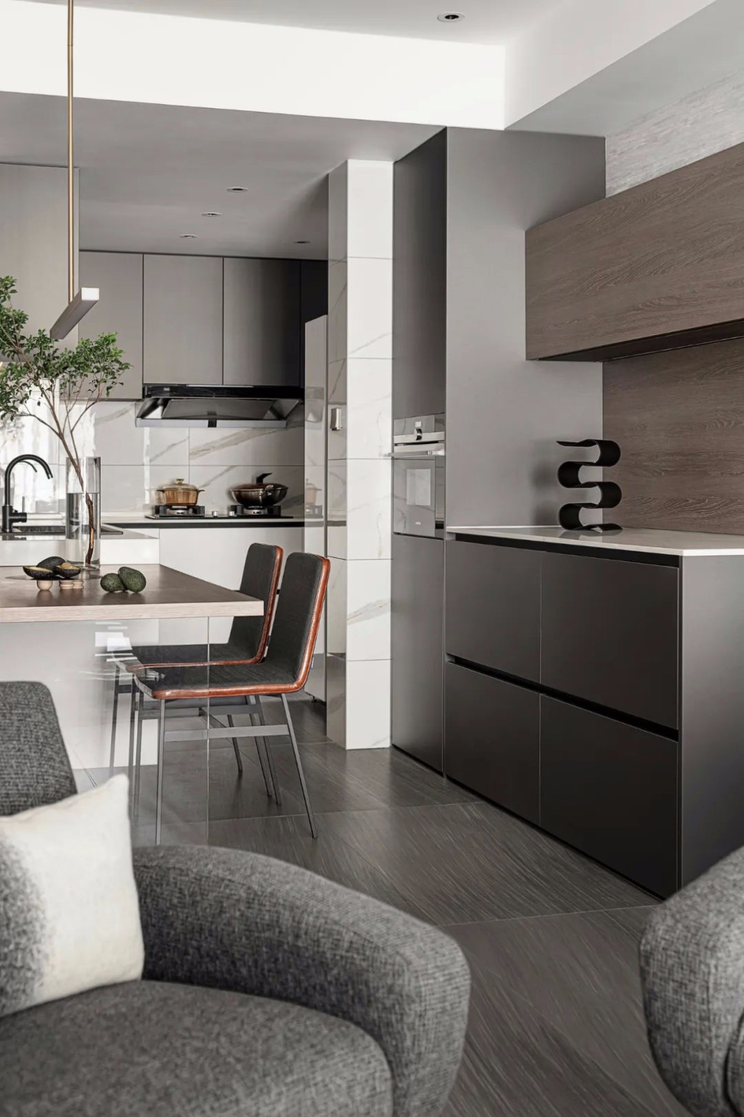 客廳電視柜和餐邊柜做了整體設(shè)計,視覺上大氣***。